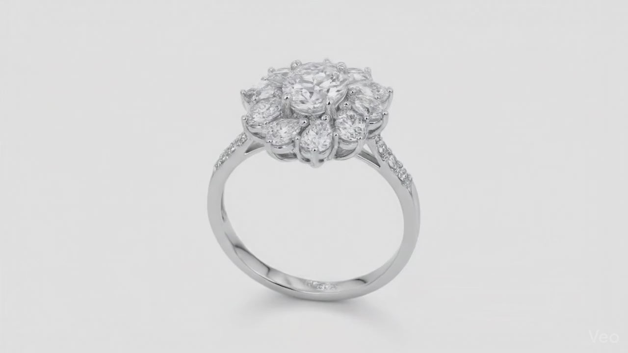 טבעת פרח עשויה מזהב 14 קראט, משובצת ביהלומי מעבדה.